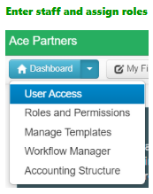 User Access is where you set up your MyWorkpapers users, including staff. You can activate, suspend or delete users, and assign them a role. Each staff member must have an individual email address as this is used for their login. Note: Once chosen, email addresses cannot be amended. When first set up, a user will be sent a link to set their password. For detailed instructions on adding staff, click here.