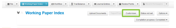 After completing the trial balance import process, access the Customiser to add and remove appropriate workpapers from the file. This option will ask a few questions about your file accounts and remove all unrequired workpapers. The Customiser can be located to the right of the Working Paper Index.