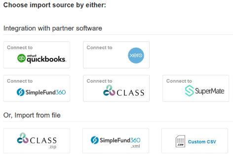 For trial balances from one of our integration partners, they can be accessed directly from the Import Trial Balance menu. Once selected each will take you through detailed login and import steps.
