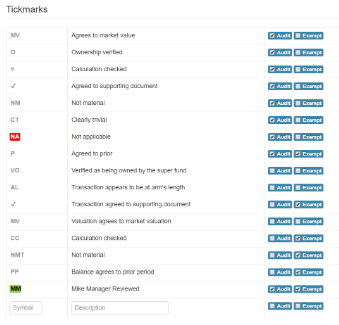 MyWorkpapers also has generic Tickmarks that can be added for your review of the lead schedule. For further information on Tickmarks click here.