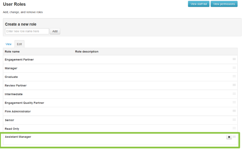 - Under the Create a New Role menu, type the name of the new user group (i.e. role) you wish to create;