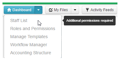If you do not provide Seniors with permission to view the Staff List (see Image 1) then staff assigned to the role of Senior will have the staff list feature greyed out, with a message advising them that they require additional permissions to access the matrix (see Image 2).