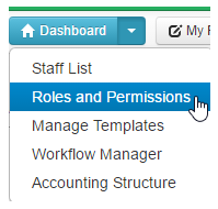 - On the top navigation bar, click on the Dashboard menu and select Roles and Permissions;
