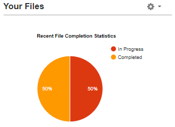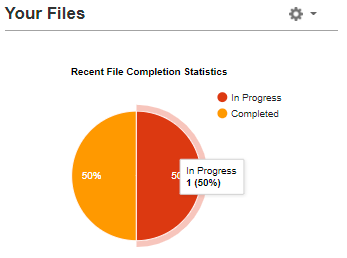 When viewing the pie chart, you have the ability to drill down into each section by click into the segment. For example, if you have the pie chart showing 50% “In Progress” and “50% completed”, you could click the “In progress” section of the pie chart to show you which file specifically is in progress as seen below;