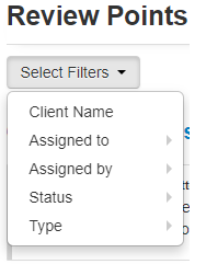 Using the Select Filters button, the review points list can be filtered by: