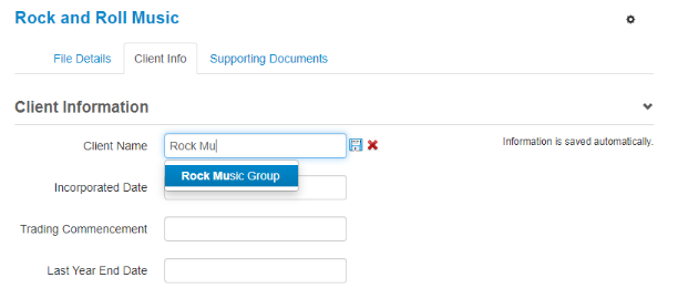5. Remove the existing client name and start typing in the new client name. This should then populate in a list for you to select;