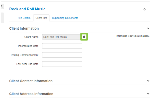 3. Click on the Padlock found next to Client Name:
