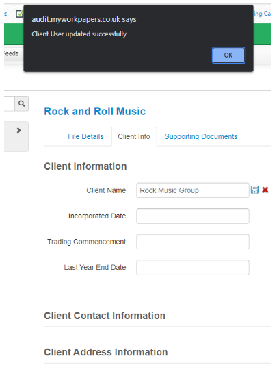 6. Once you have selected the client, you can then press the save Icon. You will be prompted that the change has been successful;