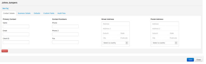 4. Fill in the required details for the client within each tab;