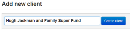 - Enter the client name, then select create;