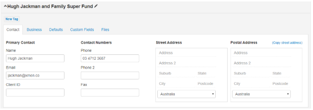 - Fill in the required details for the client within each tab;