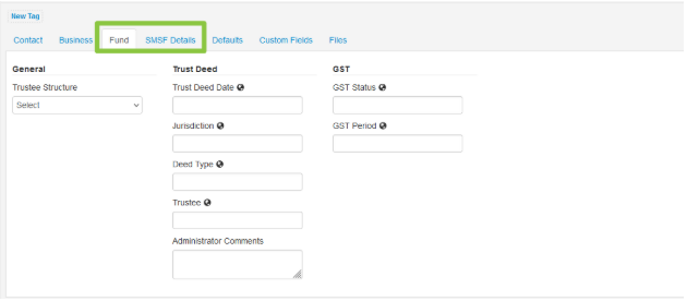 - Populate details in the Fund and SMSF Details tabs.
