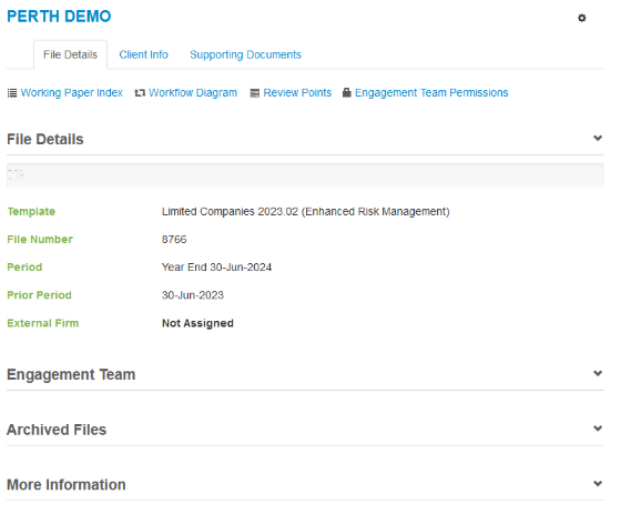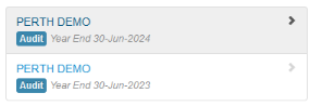 - Select the appropriate client file from the search results, taking note of the financial year end of the search results displayed;