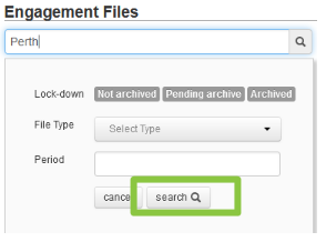 - Select a single or multiple search filters as appropriate, including whether the file has been archived (locked down), the file type and the specific financial year end;
