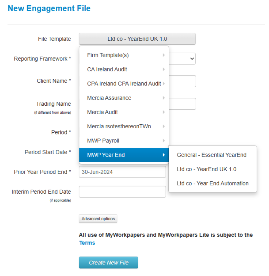 In this guide, we will be taking you through how to create a file on MyWorkpapers. This will include the new File Template button, which will now make the process of selecting your template much clearer and efficient.