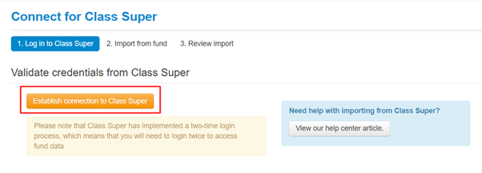 - Click the Establish Connection to Class Super button;