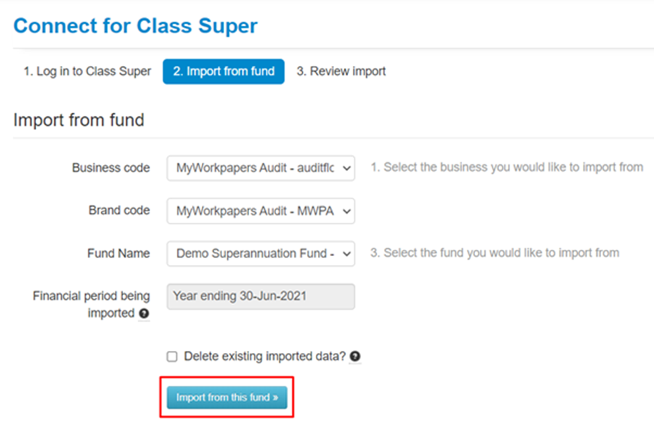 - Click the Import from this fund button;