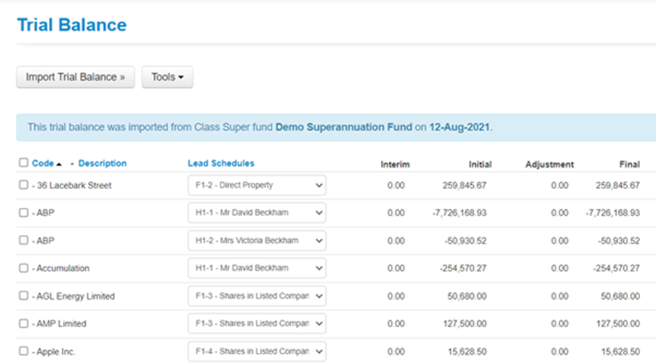 - You have now successfully imported your Trial Balance from Class;