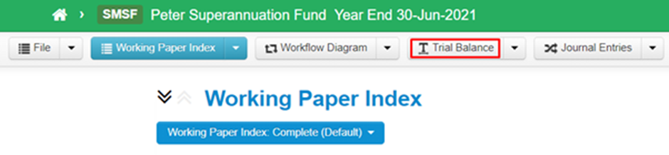 - Ensure you are in the Working Paper Index of the Fund you want to update the Trial Balance for;