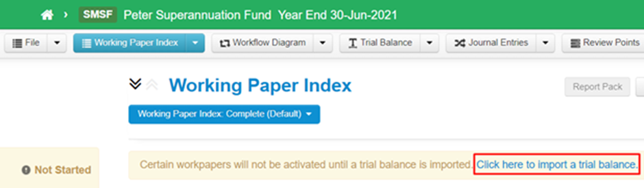 Note: You can also click on the Click here to import a trial balance text from the Working Paper Index and it would take you directly to the trial balance import as shown in step 4 below;