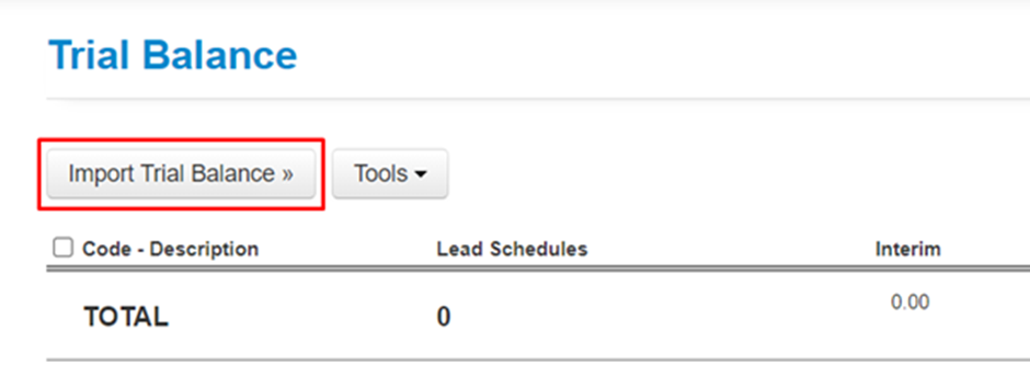 - Click on the Import Trial Balance button;