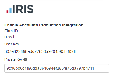 You can copy and paste the User Key and Practice Key directly into IRIS Accounts Production