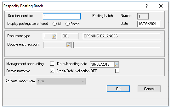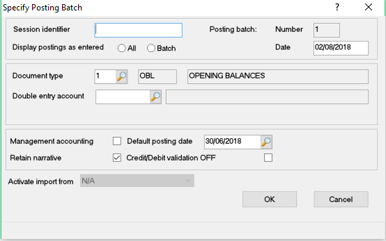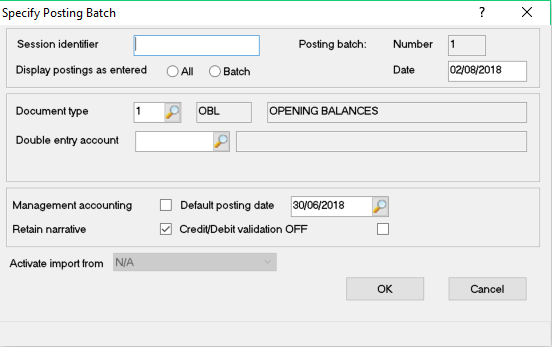 The Specify Posting Batch screen will display as follows: