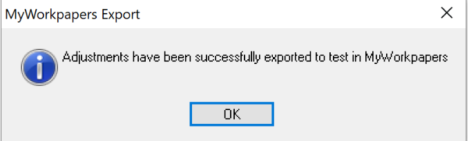 NOTE: If no adjustments have been made since the last export to MyWorkpapers, the following message will appear: