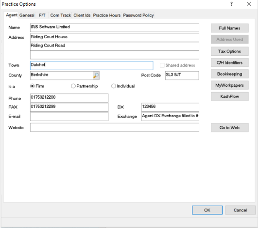 From the top toolbar in IRIS Accounts Production select, Setup | Practice Options