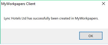 Note: If the Create a new client in MyWorkpapers and link to this client option has been selected the following MyWorkpapers Client screen will display: