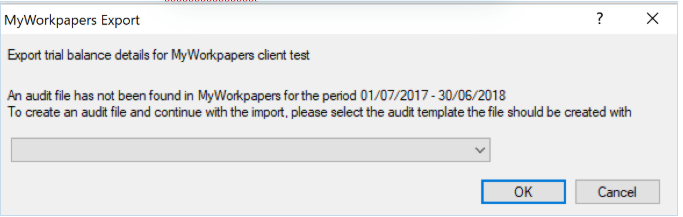 If no file exists for the client in MyWorkpapers that matches the posting dates, IRIS will prompt you to select a template to use to create a new file on your behalf. Once you have selected the template, press OK, if you have already created your MyWorkpapers file, you can skip this step.