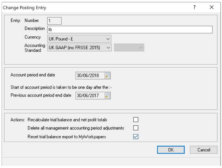 In the Change Posting Entry screen, tick Reset Trial Balance Export to MyWorkpapers