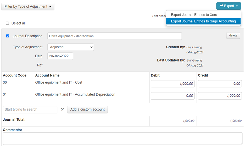 To export your journal entry adjustments to Sage Accounting, simply: