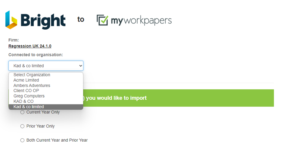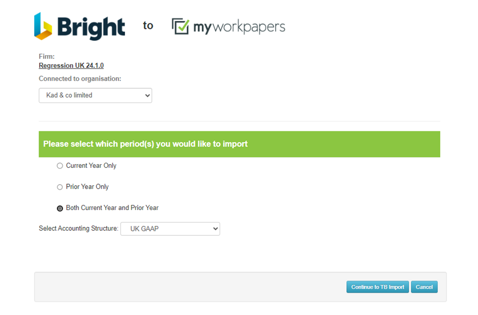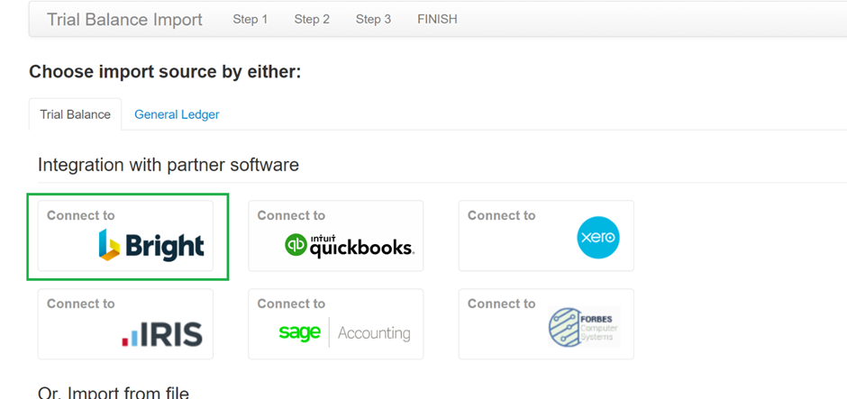 Note: Please ensure the client name and all related dates match between the file in MWP and what is shown in Bright AP. If this does not match, importing a Trial Balance will fail.