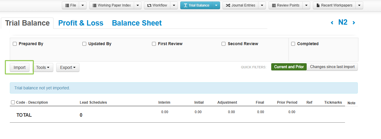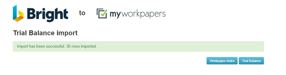 6. Once the trial balance has been imported, select whether you'd like to return to the Workpaper Index or the Trial Balance.
