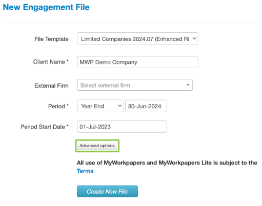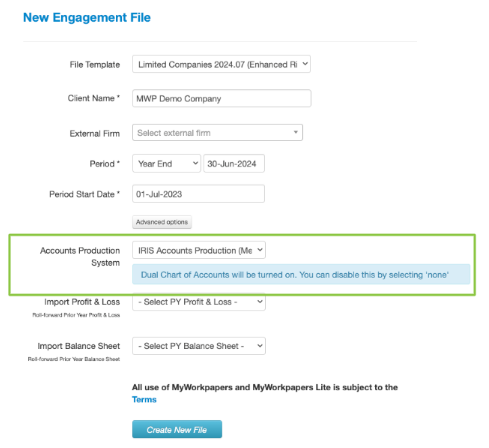2. You will now select the Accounts Product System you will be using for this file from the dropdown. You can then continue with the creation of your file;