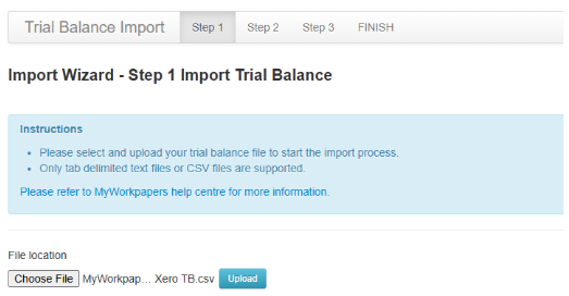 3. Once you have created your file, go into the Trial Balance and select "Import Trial Balance"