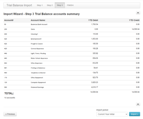 7. Review your Trial Balance and then continue to "Import"