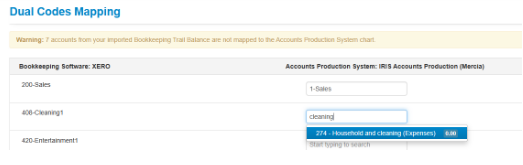 9. You will now see all rows from within your Trial Balance appear. For all rows unmapped, you can either type in a nominal code or description which will generate a list of already existing options for you to select from.