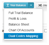 10. Once you have completed mapping all your codes, you can return to the trial balance. If you wish to change any of the codes you have mapped to, you can re-access this dual mapper area through the Trial Balance Dropdown > Dual Code Mapping;