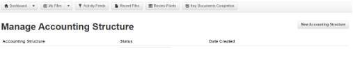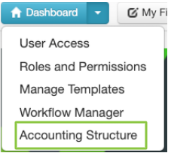 - On the top navigation bar, click on the Dashboard drop down arrow and select Accounting Structure;
