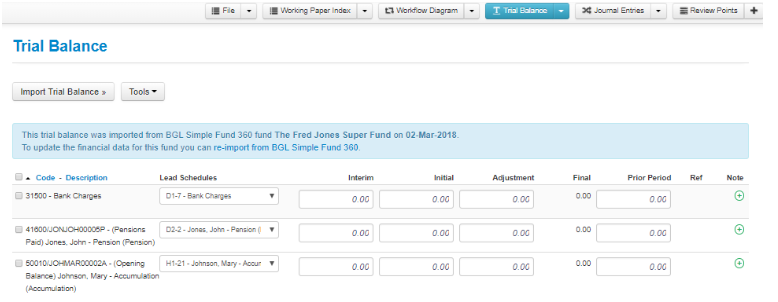 - For the accounts that you wish to delete simply enter zero for all figures;