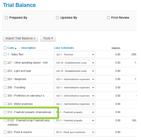 Note: You can use the search functionality to locate the account by name or the nominal code.