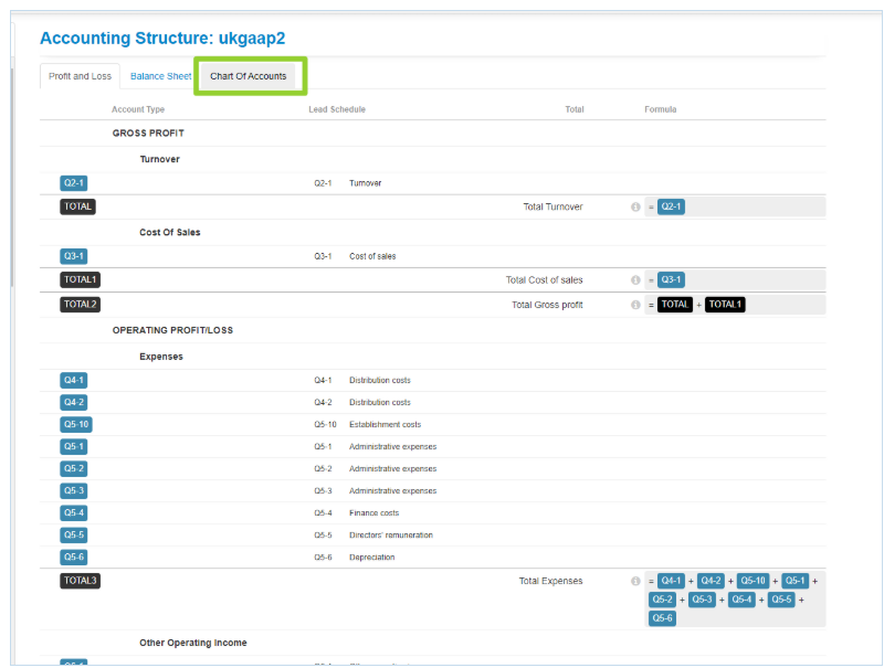 2. Select the Chart of Accounts tab: