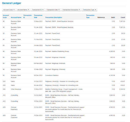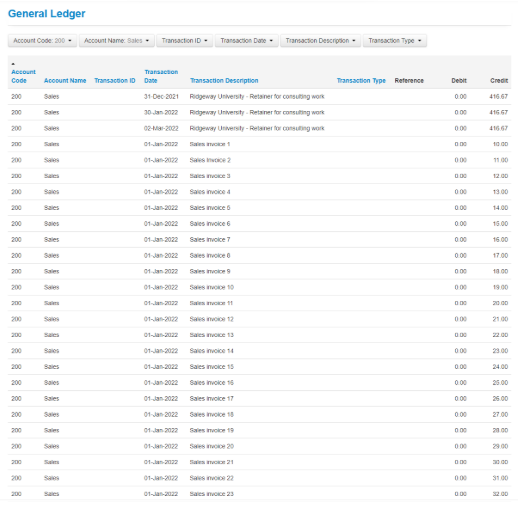 2. The general ledger transactions will be displayed;