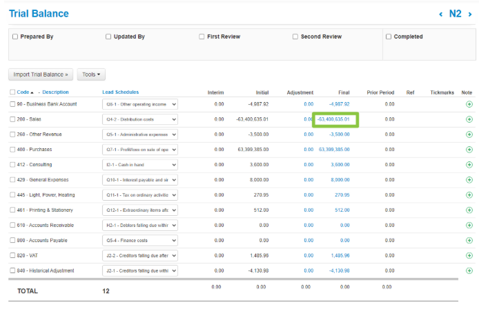 4. You can drill down into the final figures displayed on the Trial Balance. This will display the general ledger transactions. Click on the blue hyperlinked values within your Trial Balance;