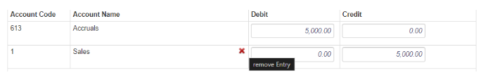 - In the Journal Entries screen, identify the journal and the account you wish to delete;