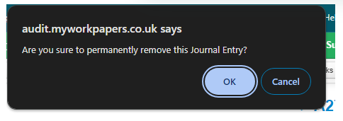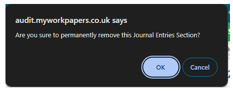 Click OK on the pop up menu to proceed with the deletion of the entire journal.