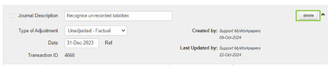 At any point during your audit or during the recording of a journal entry you can either delete a specific account selected in the journal or delete the entire journal.