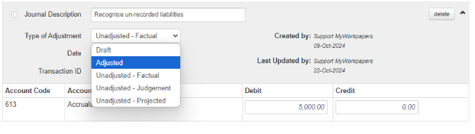 TIP: Set all journals as unadjusted until you have agreed with the Partner and the client that the adjustments will be made.